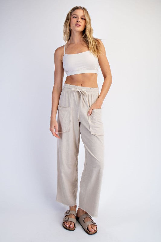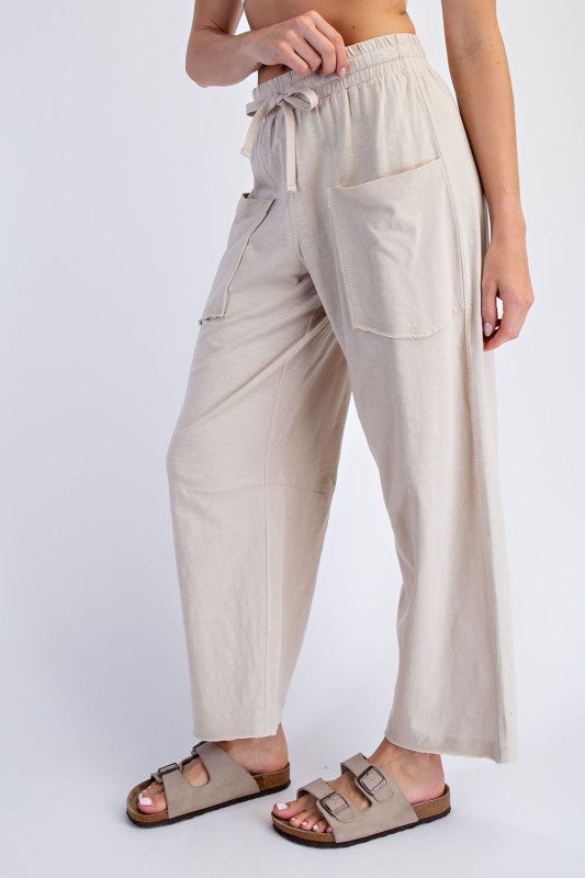 Crafted from breathable cotton slub fabric, these barrel pants feature a slightly cropped length for a modern silhouette. Patched front pockets add a casual utility touch, while subtle dart detailing at the inner knees enhances shape and structure. Relaxed yet refined, they're a versatile choice for effortless everyday wear.