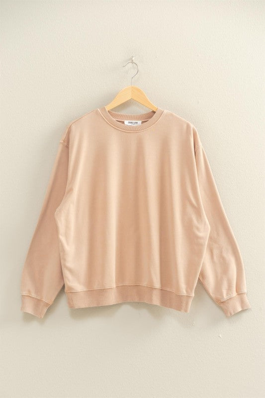 This relaxed-fit oversized sweatshirt features a mineral wash that adds a subtle vintage fade and soft, lived-in feel. A must-have item for casual wardrobes, it pairs effortlessly with jeans or leggings and layers perfectly for fall. Combines comfort with versatile style.