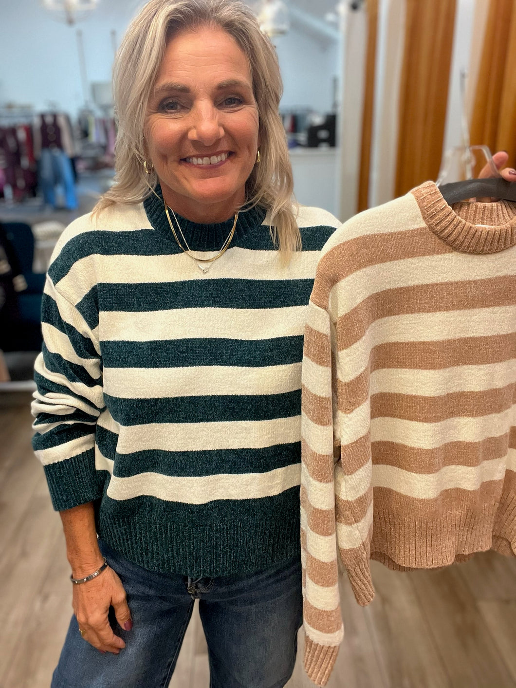 Designed with broad horizontal stripes and a cozy ribbed neckline, this piece offers exceptional comfort and a modern silhouette. The long sleeves end in ribbed cuffs, accenting the relaxed fit that makes it perfect for layering over collared shirts or under jackets. Ideal for weekend getaways or casual office days, this sweater pairs seamlessly with denim or tailored trousers, unlocking endless style possibilities.