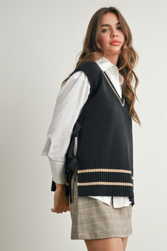 Keep it sleek and sporty with this striped trim sleeveless V-neck top. Designed with clean lines and contrast stripe detailing, it offers a fresh, modern look. The V-neckline adds a flattering touch, making it perfect for pairing with jeans, skirts, or shorts for an easy, everyday outfit.