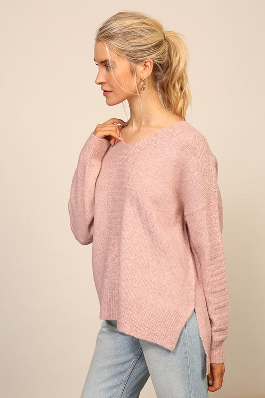 Slip into effortless comfort with this soft V-neck sweater. Perfect for layering or wearing solo, it's your go-to piece for casual days and cozy evenings. The relaxed fit and gentle fabric make it ideal for everything from coffee runs to weekend hangouts. A wardrobe essential that pairs with virtually anything in your closet.