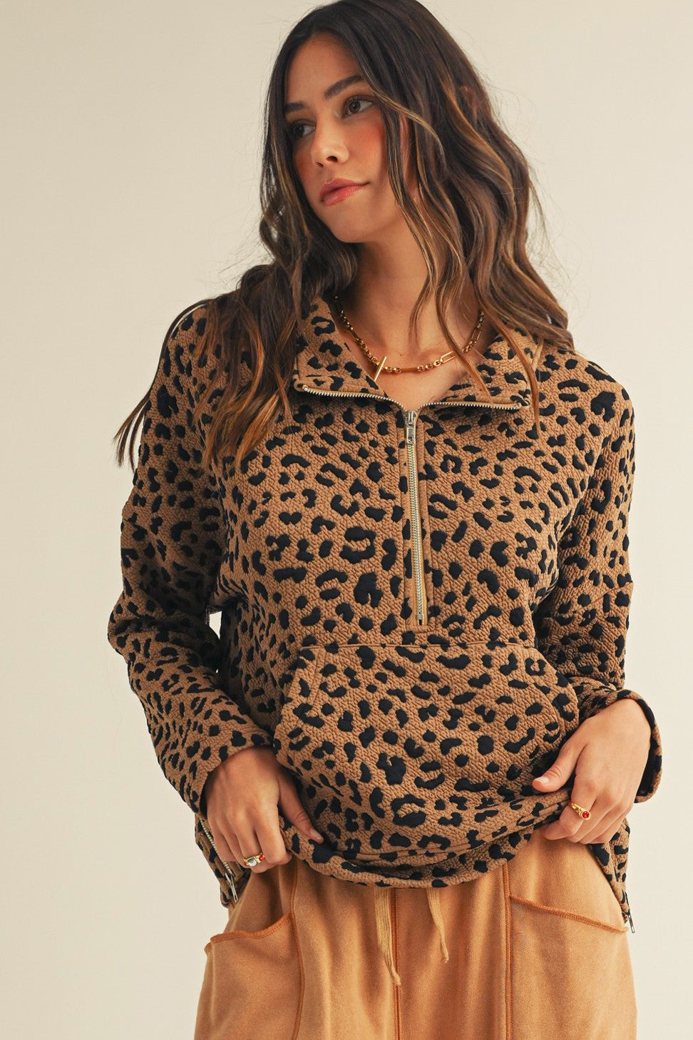 Get ready for our Leopard Dreams quarter zip top! This fun piece brings style to your everyday look. The iconic leopard print is a total mood-booster, while the quarter zip keeps things casual and cool. Layer it over your favorite tee, throw it on solo, or pair it with anything in your closet—this versatile top is your new go-to for adding personality to any outfit.