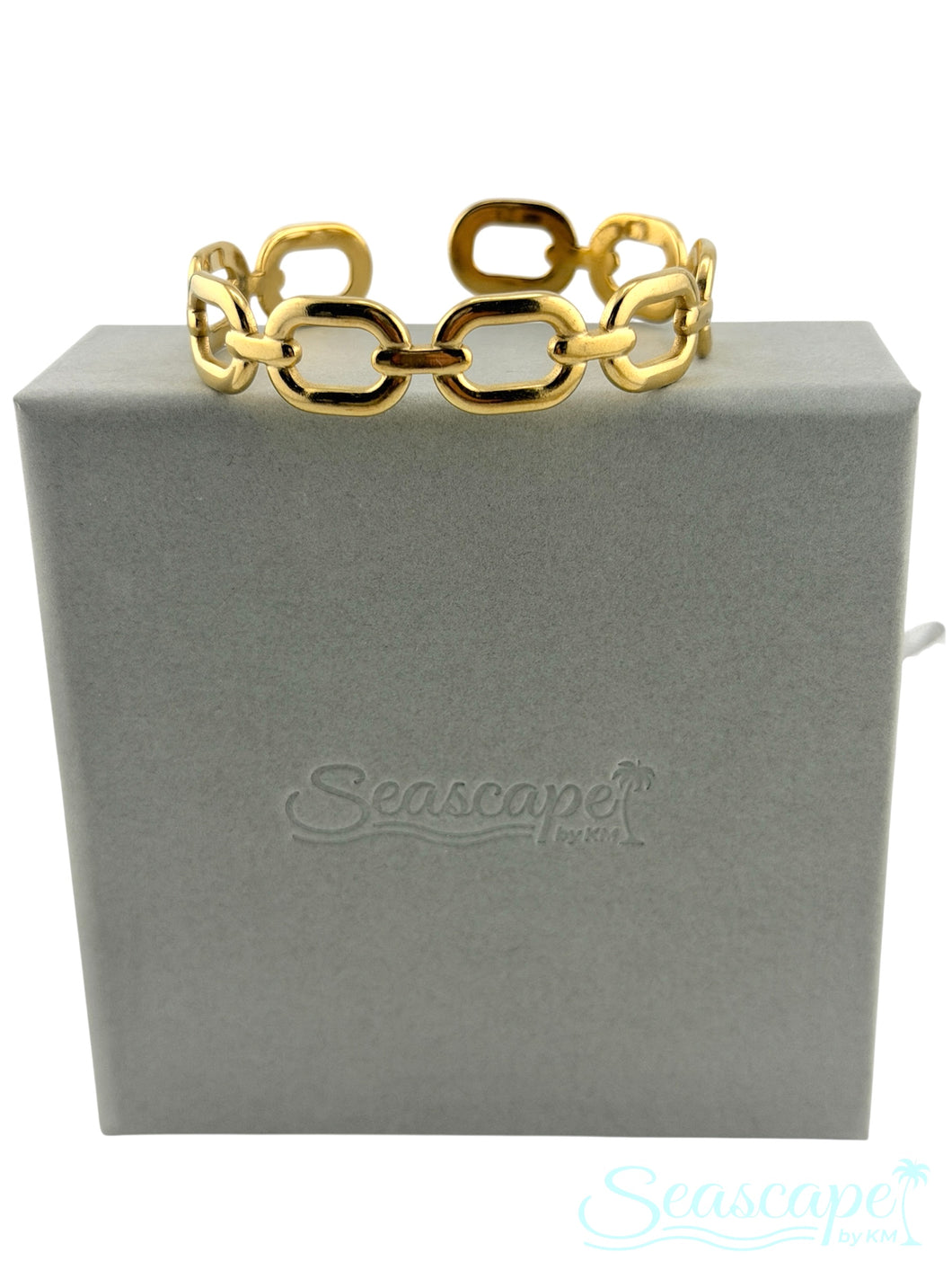 Meet your new go-to accessory! This gorgeous stainless steel cuff bracelet rocks a chic gold-toned link design that's totally eye-catching. Built to last with durable stainless steel, it won't tarnish or fade no matter how much you wear it. Whether you're stacking it with other bracelets or letting it shine solo, this beauty adds instant polish to any outfit. Casual vibes or fancy nights out—it's got you covered!