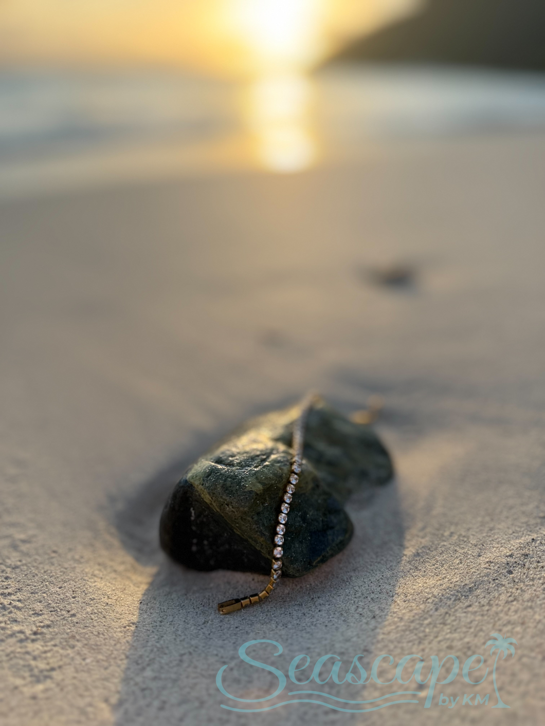 Enhance your everyday sparkle with the Seascape Vera Tennis Bracelet, a stunning piece that wraps your wrist in timeless elegance. Crafted from durable stainless steel, this bracelet features diamond-look stones that line the entire length, creating a continuous shimmer that catches the light beautifully. Perfect for layering or wearing solo, it's the versatile accessory that works from day to night. Comfortable enough for all-day wear, this bracelet brings that luxe feel without the fuss. Length 6.75"