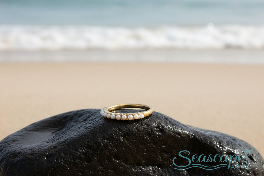 Get that coveted pearl aesthetic with this adorable faux pearl ring that won't break the bank. Featuring a luminous row of pearls in a delicate, minimalist setting, it's the perfect piece for stacking, layering, or wearing solo. This versatile ring brings vintage-inspired charm to modern style, making it an instant favorite for any occasion—from brunch with friends to date night glam.
