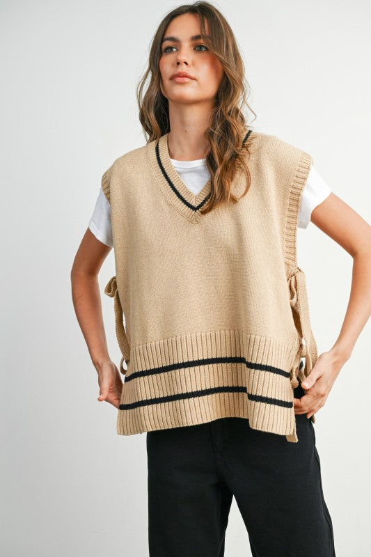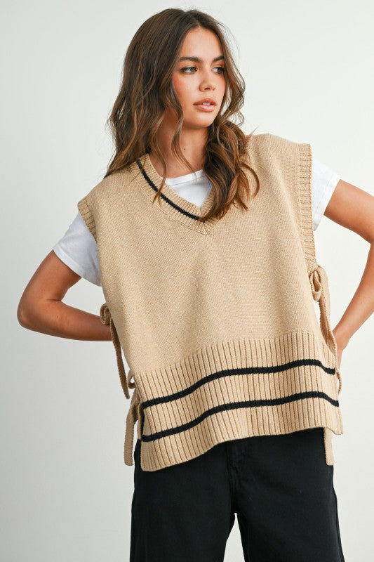 Keep it sleek and sporty with this striped trim sleeveless V-neck top. Designed with clean lines and contrast stripe detailing, it offers a fresh, modern look. The V-neckline adds a flattering touch, making it perfect for pairing with jeans, skirts, or shorts for an easy, everyday outfit.