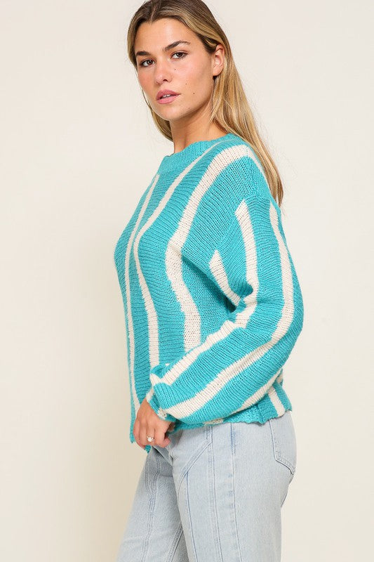Introducing our Vertical Wave Stripe Oversized Sweater Top, a stylish and versatile addition to your wardrobe. This sweater top features a unique vertical wave stripe pattern, creating a bold and eye-catching design. The oversized fit adds a relaxed and comfortable feel, making it perfect for effortless layering or wearing on its own.